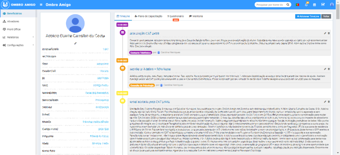 Esta Plataforma Web é uma ferramenta de trabalho dos cuidadores e dos profissionais de saúde no terreno, o backoffice agiliza a gestão do trabalho dos cuidadores e dos profissionais de saúde, monitorização dos utentes e suporte de dados criticos.